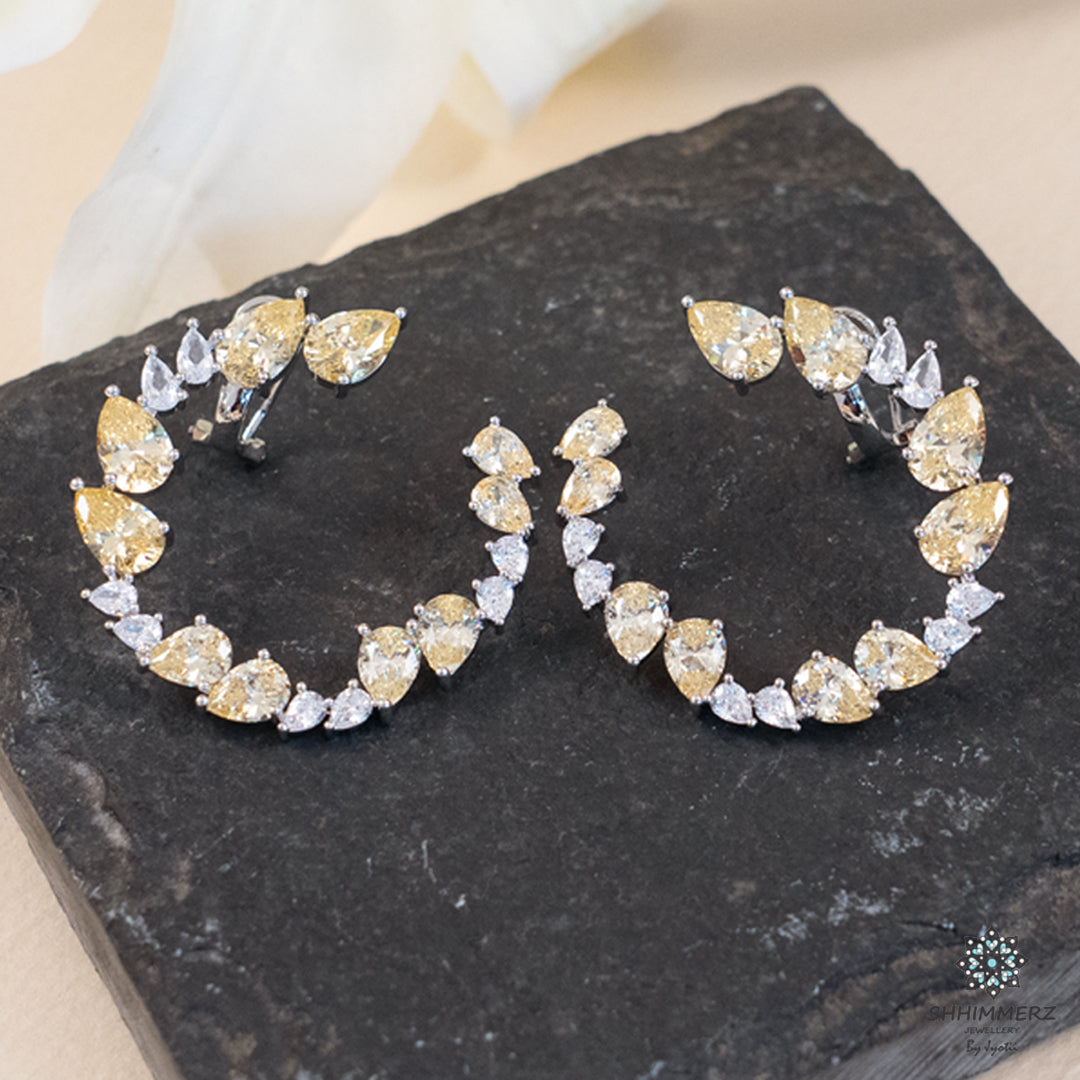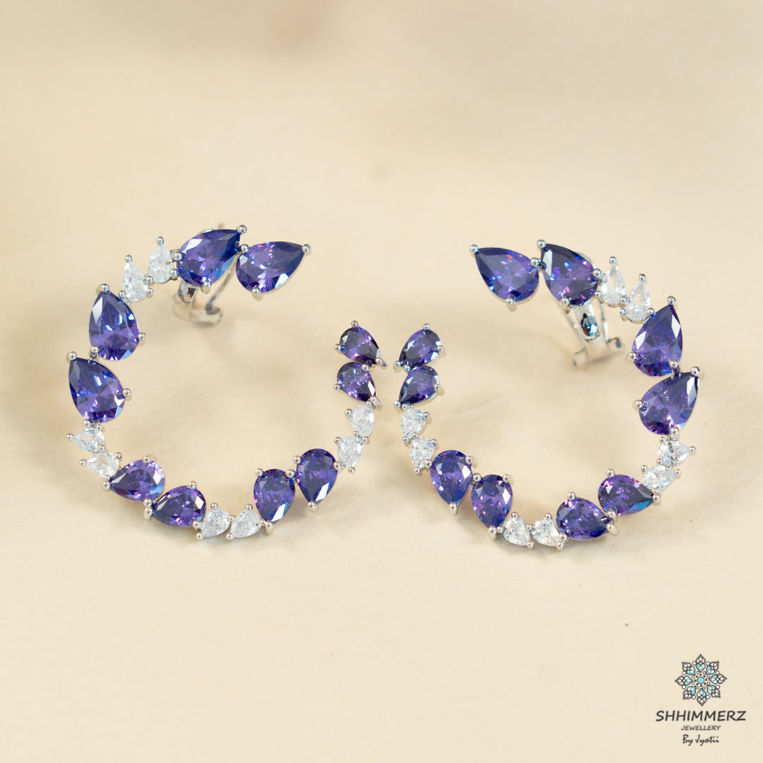 These colourful semi-circle earrings in costume jewellery radiate charm and vibrancy. Adorned with multi-hued stones and intricate detailing, they bring a playful yet elegant touch to any outfit. Lightweight and trendy, these earrings beautifully blend modern design with traditional flair, perfect for festive occasions or everyday statement style.