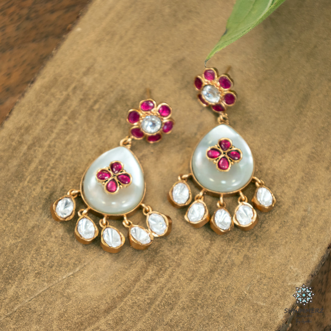 Charming Kundan earrings featuring a delicate pink flower design, handcrafted with intricate detailing and traditional artistry. These custom earrings blend floral elegance with the sparkle of Kundan stones, creating a graceful and feminine look. Perfect for festive occasions, weddings, or special celebrations, they add a soft, vibrant touch to any ethnic outfit.